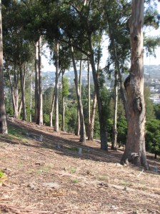 The fire ladders on these eucalypts have been removed in the Mountain View Cemetery.