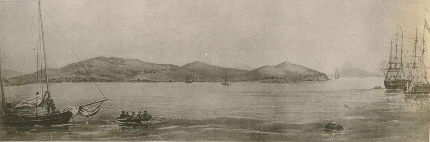Yerba Buena (now San Francisco) in the Spring of 1837. First known print of San Francisco. Bancroft Library