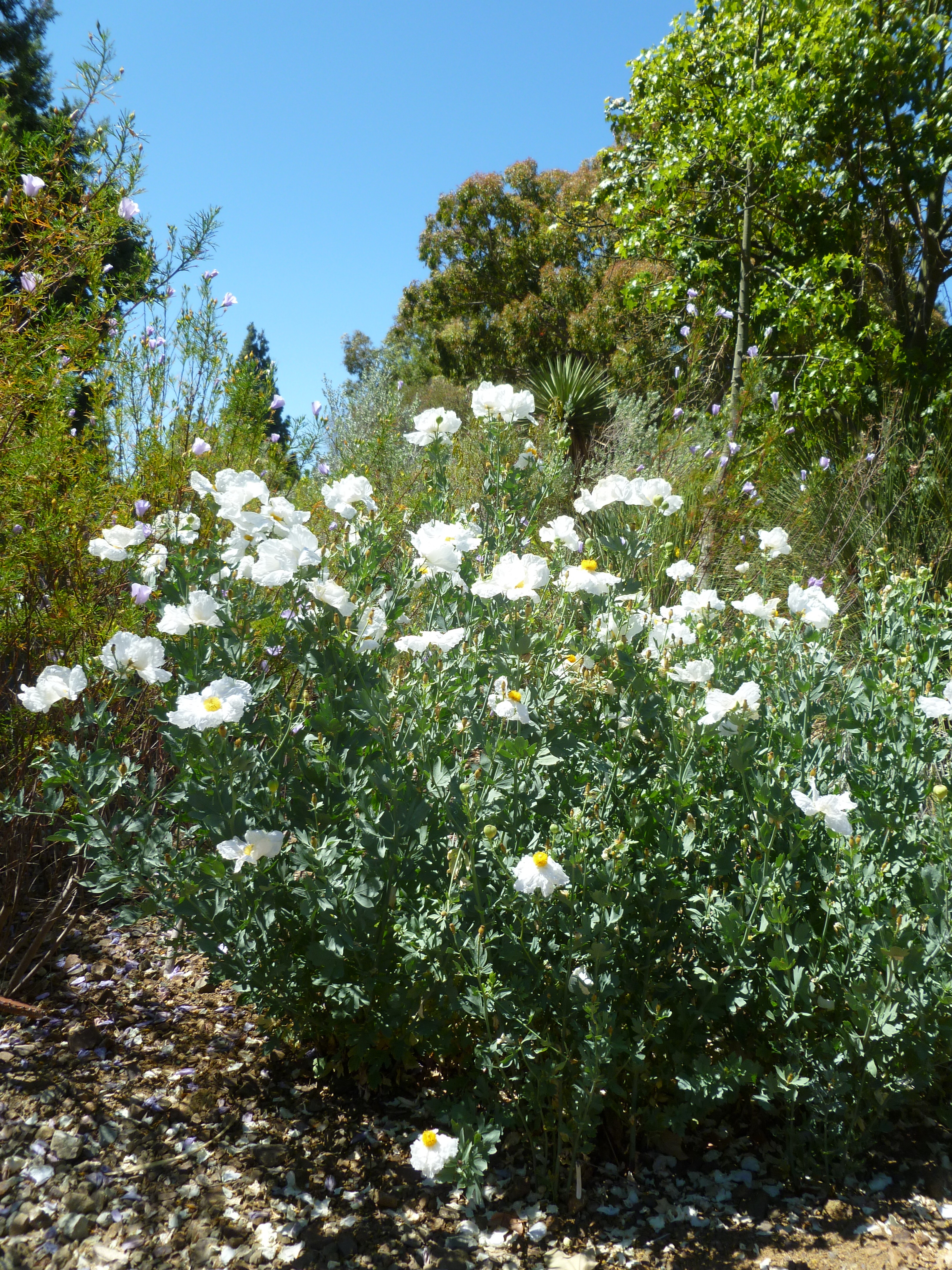 Matilija poppy (Romneya coultera), is another California native in the Bancroft garden, but one which must be watched closely because, “…its major problem is that it spreads underground and can be invasive.” This is a description often applied to non-native plants. However, when the author is a horticulturalist, rather than a nativist, it is sometimes applied to native plants as well.