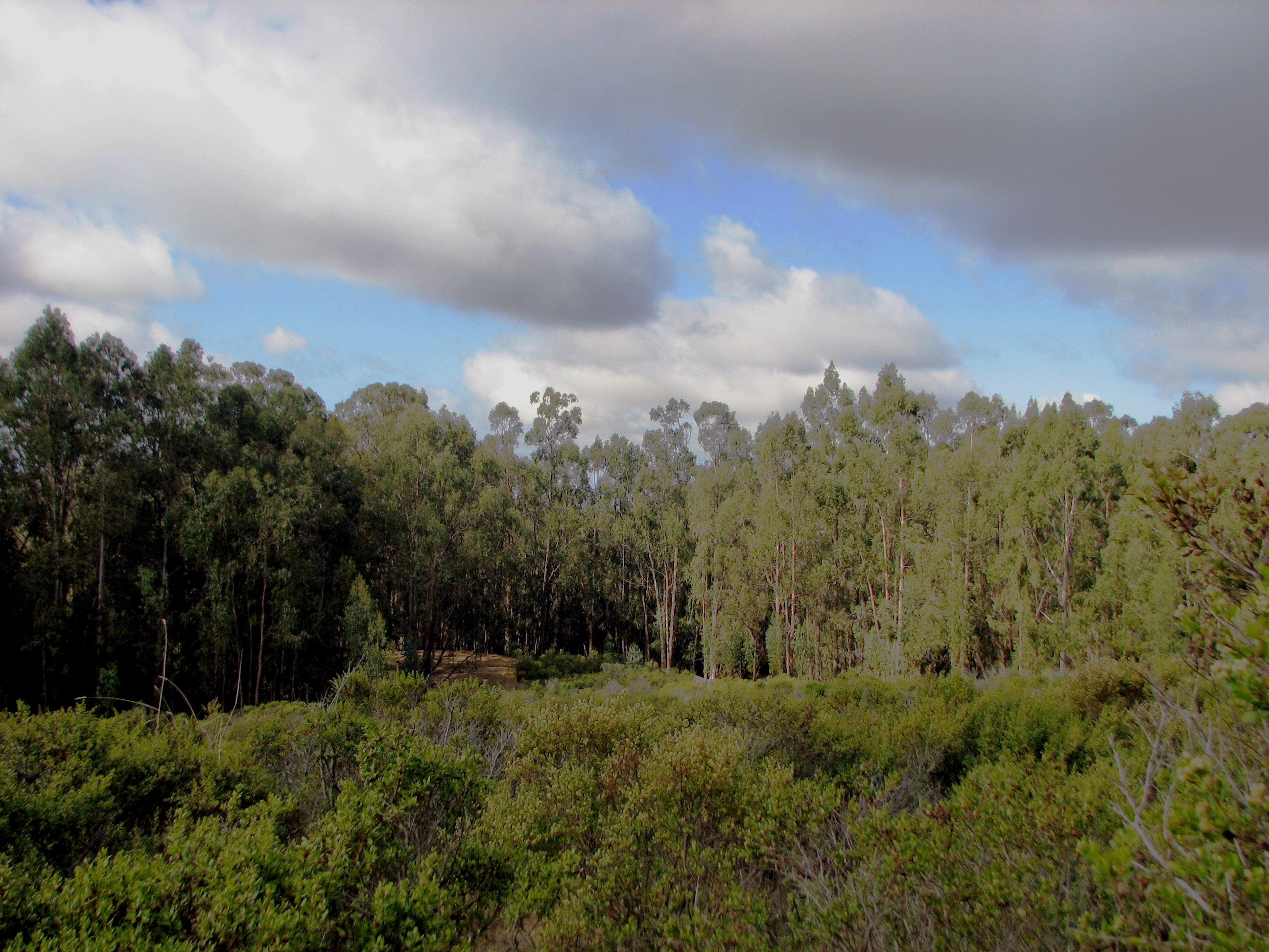 And the eucalyptus forest behind the coyote brush at Lake Chabot which is called "invasive" but in fact, rarely invades.
