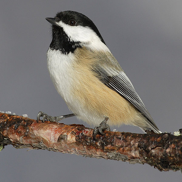 • Black-capped Chickadee:  “In winter Black-capped Chickadees eat about half seeds, berries, and other plant matter, and half animal food (insects, spiders, suet, and sometimes fat and bits of meat from frozen carcasses). In spring, summer, and fall, insects, spiders, and other animal food make up 80-90 percent of their diet. At feeders they take mostly sunflower seeds, peanuts, suet, peanut butter, and mealworms.” (2)