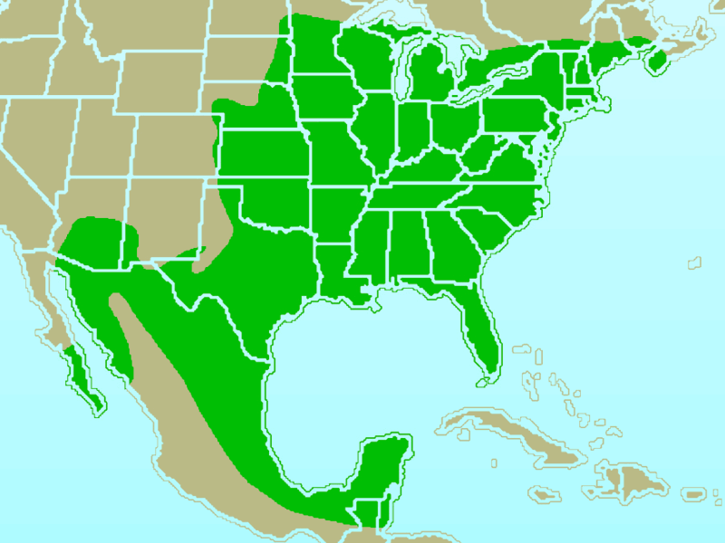 Range map of Northern Cardinal. public domain