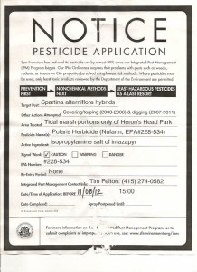 Two projects which were funded by Measure CC “required” pesticides: triclopyr (Garlon) to prevent the re-sprouting of eucalyptus trees, and imazapyr (Polaris) to remove the “non-native” grass Spartina along San Francisco’s Bay shoreline. EBRPD’s own literature counts among successful CC projects: “Marsh cleanup at Martin Luther King Jr. Regional Shoreline, including Clapper Rail habitat enhancement and Spartina control” as well as “restoration of grasslands…at Pt. Pinole Regional Park”. (5) Based on your own reports, Spartina control projects have required the application of hundreds of gallons of imazapyr, some by aerial spray.