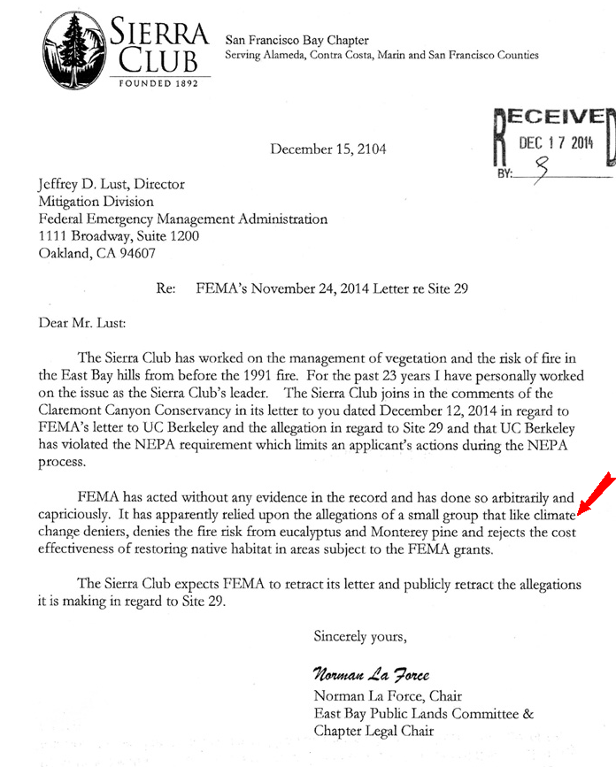 In January 2015, UC Berkeley destroyed about 25 eucalyptus trees at the top of Dwight Way, above the intersection of Sports Lane. We visited the area shortly after the trees were destroyed and told our readers about the project. We also reported that the project was an example of the huge gap between policy and practice in UC Berkeley’s tree removal projects. The following is an excerpt from a letter that a member of the public sent to FEMA about this project, detailing the discrepancies between UC Berkeley’s theoretical commitments to “best management practices” and their actual land management practices: