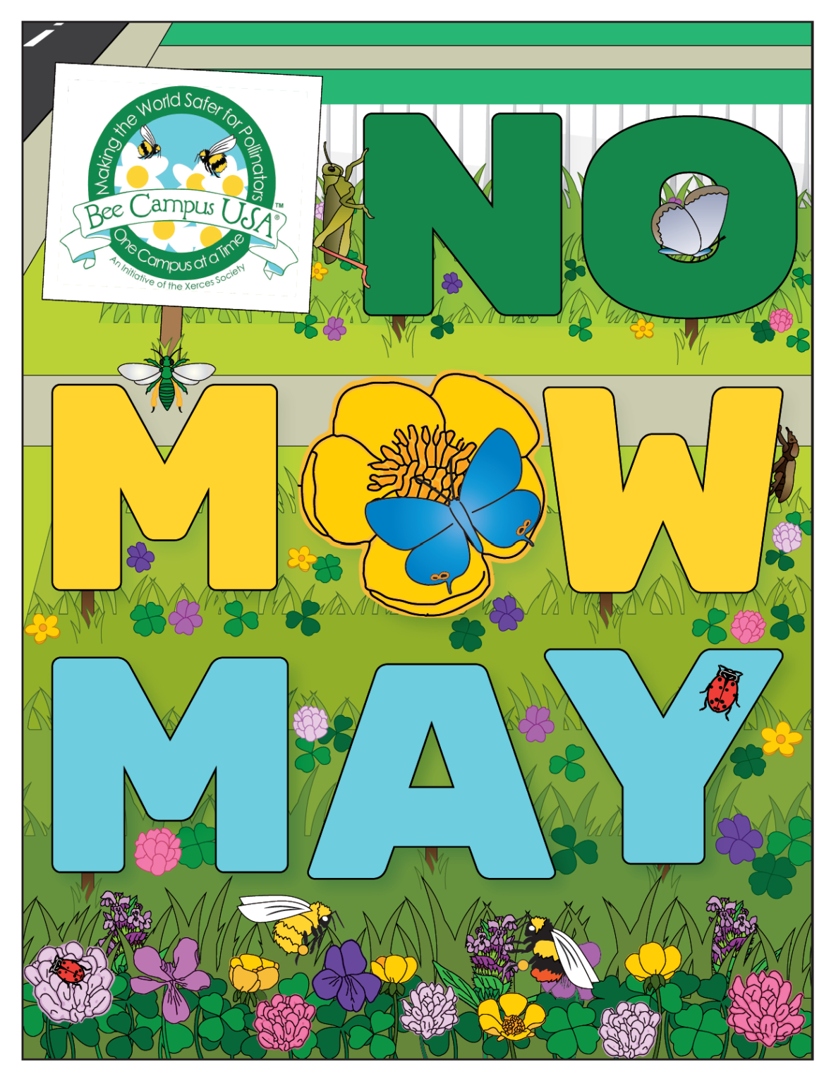 “No Mow May” originated in Britain out of concern for declining populations of bees. Communities make a commitment to stop mowing their lawns in May to let the weeds dominate their lawns. Weeds such as dandelions and clover give the bees an early boost in the spring that studies show increases bee populations. Lawns maintained with pesticides and fertilizers provide poor habitat for bees.