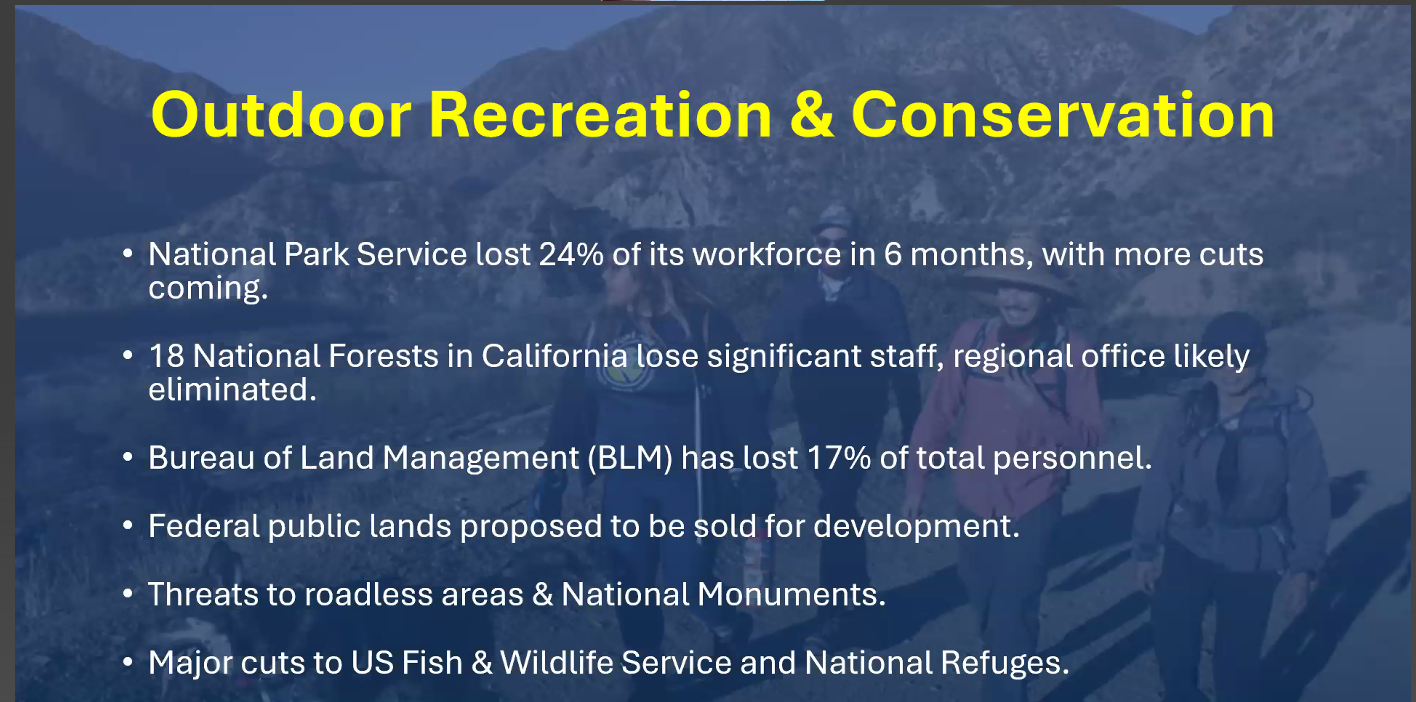 - Federal agencies that were responsible for protecting the environment in the past have been defunded and their staff drastically reduced. The President calls them “Democrat agencies.” National parks, wildlife refuges and marine sanctuaries have lost both their funding and much of their staff. Places that were protected from unfettered resource extraction, no longer are.