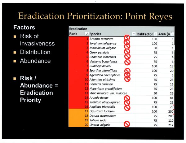 Every Cal-IPC Symposium has wrestled with the question of how to convert non-native grassland to native grassland. A study of 37 grassland “restorations” in coastal California answers that question. (1) It’s really quite simple. All you need to do is define success as 25% native plants after “restoration” and limit post-project monitoring to 5 years or less: “Monitoring is done ≤5 years after project-implementation, if at all, and rarely assesses the effects of management practice on project success.”