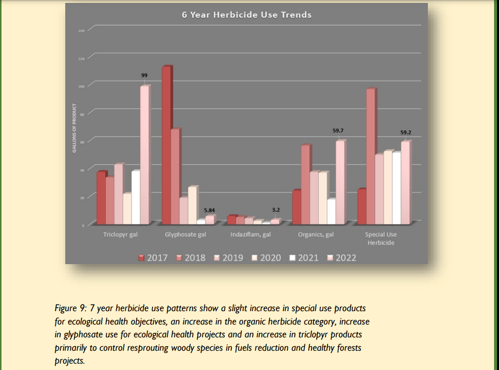 It seems likely that a fuels management project was selected for this presentation because it’s easier to justify herbicide use for fuels management than for eradicating harmless plants solely because they aren’t native.