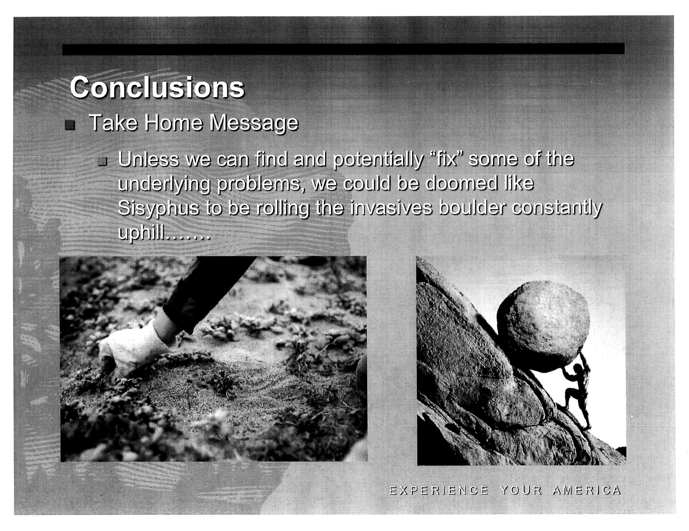 Professor Martin believes that the identification of non-native species as the scapegoat was not based on experimental evidence, but merely a description of the strategies used by public land managers, as well as The Nature Conservancy. Non-native species were a convenient scapegoat because they were easily identified and were an easy substitute for identifying and remediating the underlying conditions causing so-called “invasions.” “Although the role of invasive species in native species extinction has since been challenged by some ecologists, the influence of this fear on species management has been enormous…The US federal budget for invasive species management increased by $400 million between 2002 and 2005, for example.”