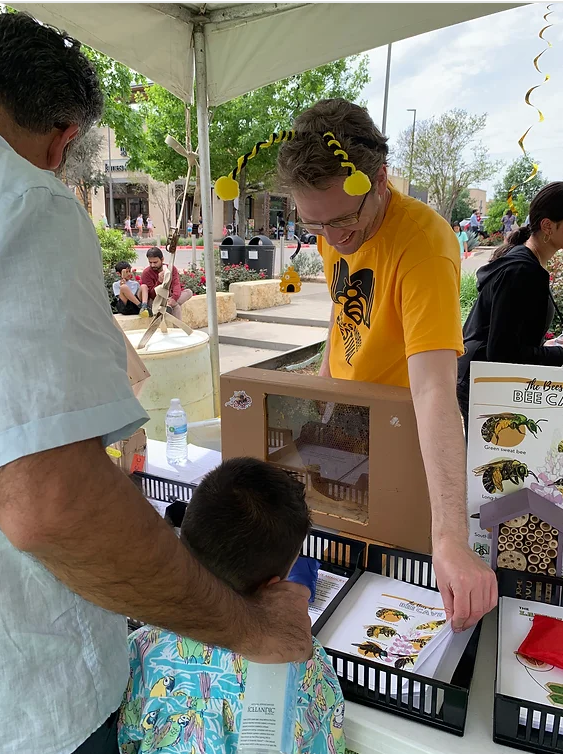 His childhood experience in beekeeping inspired him to return to that interest when bee colony collapse became a public concern. He keeps a honeybee hive on his small rural property primarily as a teaching tool to tell children about bees and how to help them by not using pesticides in their gardens, for example. He takes his show on the road to the annual Books and Bees Festival in Bee Cave.