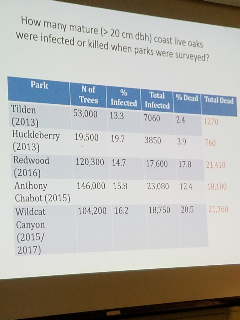 - Plans to plant oaks where non-native trees have been clear cut willfully ignore the realities of the accelerating epidemic of Sudden Oak Death (SOD) in the East Bay Hills. According to the press release for the 2020 SOD Blitz, “…overall the rate of SOD infections increased in the wildland urban interface, in spite of reduced rainfall. This is the first time in 13 years of SOD Blitz survey that infection rates increase in spite of reduced rainfall, suggesting SOD is becoming endemic at least on the Central coast of California.” As Cal Fire knows, dead trees are a greater fire hazard than living trees.