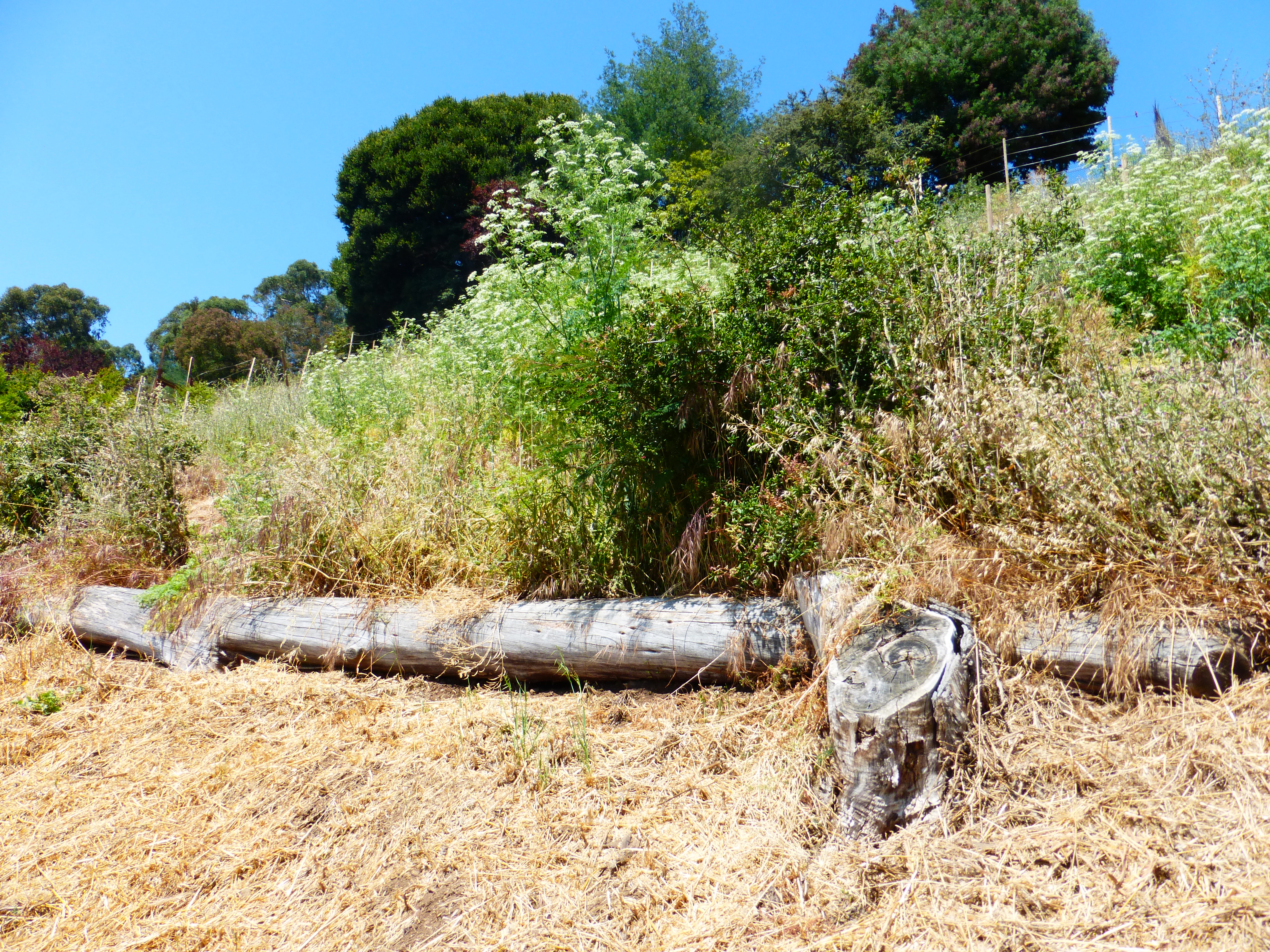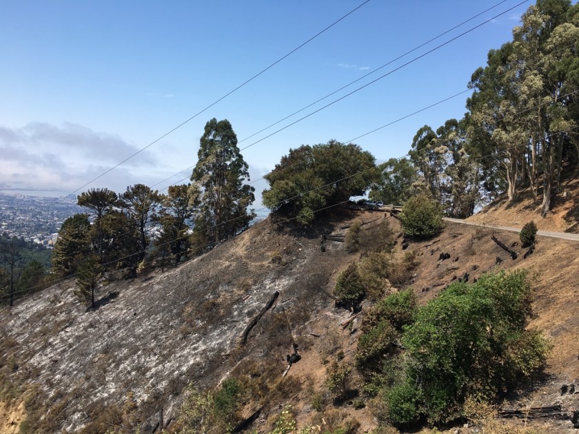 The recent fire in the East Bay Hills was another opportunity for UCB to gin up the fear machine against non-native trees. The fire started on Grizzly Peak Blvd where UC Berkeley destroyed 1,900 eucalyptus trees on 11 acres in 2004. When the trees were destroyed, the ground was quickly colonized by non-native annual grasses and the road was lined with the trunks of the trees they had destroyed. The dried grass and the dead logs were the fuel of the fire that started on August 2, 2017. The fire was stopped when it crossed the road into the eucalyptus forest in Tilden Park.