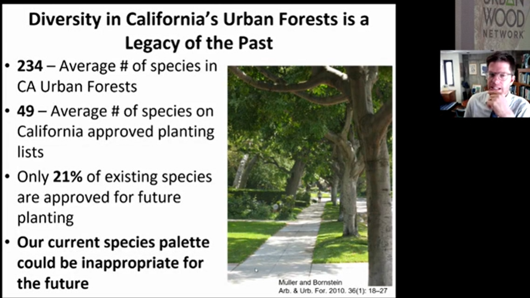 “There are many reasons to plant trees on San Francisco streets, and many of our streets need them. Climate change is not a stand-alone phenomenon; it is intimately related to diversity of biological elements. That argues for planting native plants to invite dispossessed wildlife back into the city and you do that by planting the plants they need. There are trees, shrubs, and perennials that ought to line our street to function in this way. Carbon removal should not be a factor in our street plantings—biodiversity should be Number 1.”